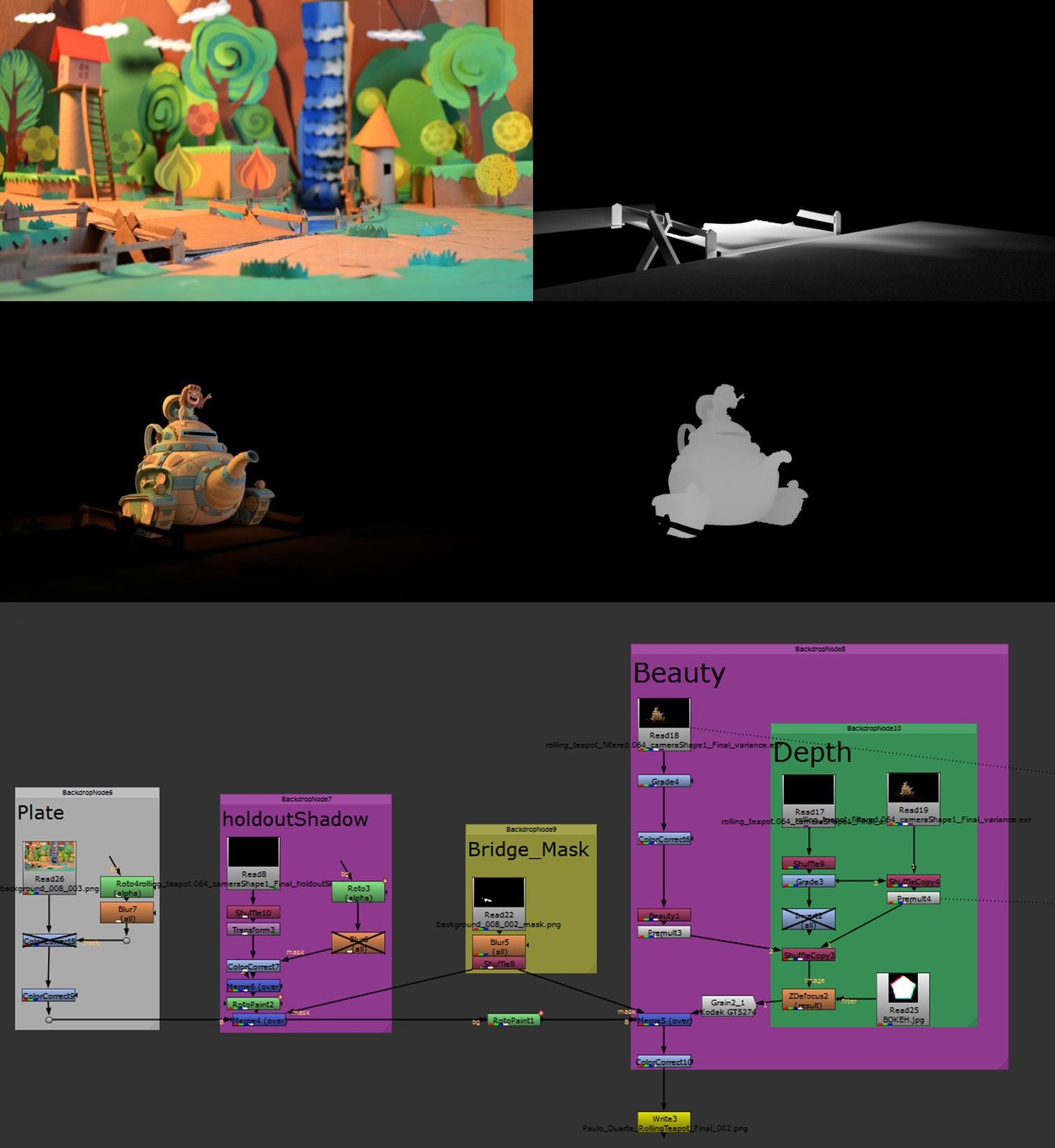 Illustration made for RenderMan challenge, with an already existing model, the challenge was to create texture, shading, and compositing on a real background, I chose to create a whole paper scenario, and make the integration of the model in this world of paper.